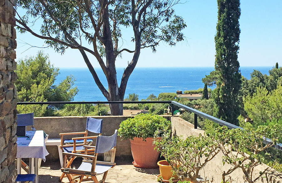 At Bormes-les-Mimosas, in the private and guarded domain of Gaou Bénat, the plot of about 540sqm is not overlooked and facing south/southwest. It is gently sloping with beautiful terraces decorated with a Mediterranean garden perfectly maintained (cypress, strawberry trees, cork oaks). At 150 meters from the property, a detached garage of 15sqm can accommodate a vehicle or boat. The sea view house of about 100sqm, built in 1970 on two levels, hosts 4 bedrooms. It enjoys a panoramic view of the islands of Levant, Port-Cros and Bagaud, the hills of Bénat, Giens peninsula and the beaches of Cabasson and La Londe-les-Maures. Garage. DPE : E