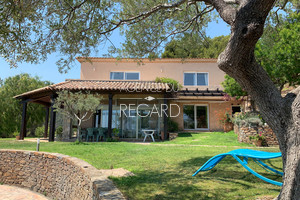 This sea view property of approximately 4,457m² is located in Carqueiranne in a privileged location in the countryside. Facing due south, in a dominant position, the land is punctuated by dry stone walls, in the middle of a perfectly maintained and landscaped garden. It is flat all around the house. The sea view is breathtaking. Charming coves are 600 meters away. The main villa of approximately 230m² (4 bedrooms) was built with high quality materials. The rooms offer beautiful volumes, beautiful light and all benefit from a splendid sea view. Guest house of approximately 66m² with 2 bedrooms. Swimming pool. Cottage. DPE: E - GES: C. ADR1189.