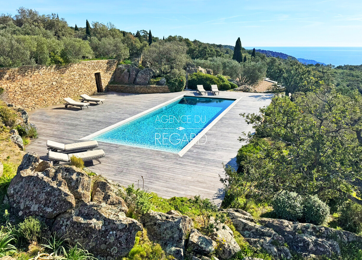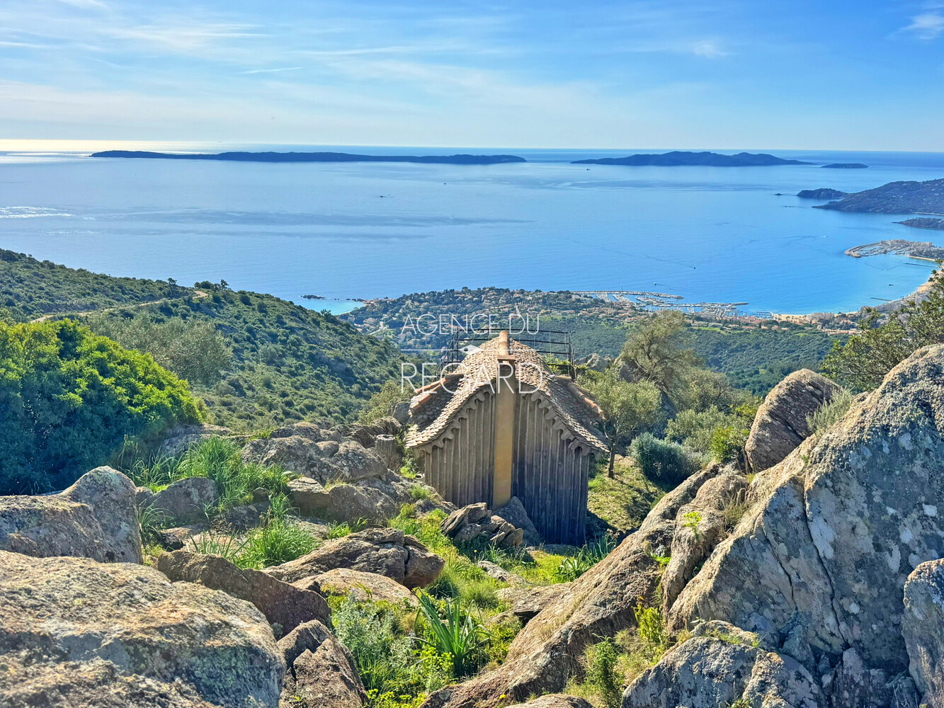 Exclusivity ! Located on the Route des Crêtes between Bormes-les-Mimosas and Le Lavandou, this exceptional 11-hectare property, nestled in the countryside, boasts breathtaking panoramic sea views. The sea view stretches from the Giens peninsula to Rayol-Canadel, taking in the Îles d'Or along the way. A villa, a guest house, and a cabin, all fully renovated, offer 300sqm of living space and a total of 7 bedrooms. A pool area also enjoys this incredible sea view.