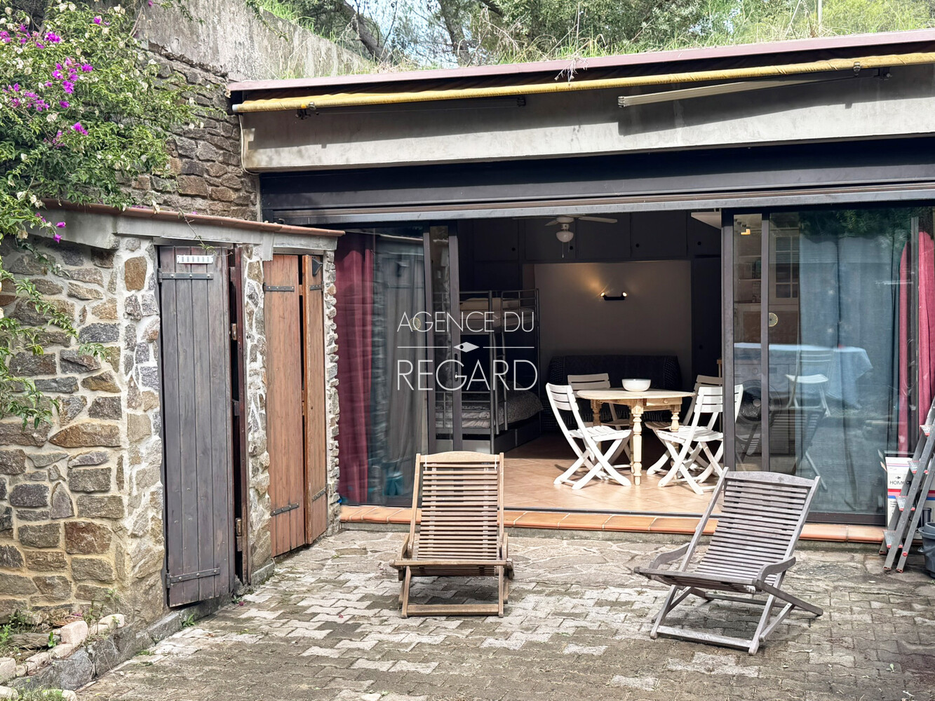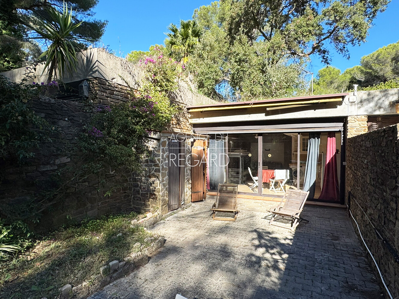 Bormes-les-Mimosas, in the private and guarded domain of Gaou Bénat, this property of about 62sqm, facing south, enjoys an exceptional location 3 minutes by walk from Gaou Bénat beach. House of 28sqm, modern in style, with equipped kitchen opening onto a living room extended to the south by a terrace. Garden shelter. DPE in progress.