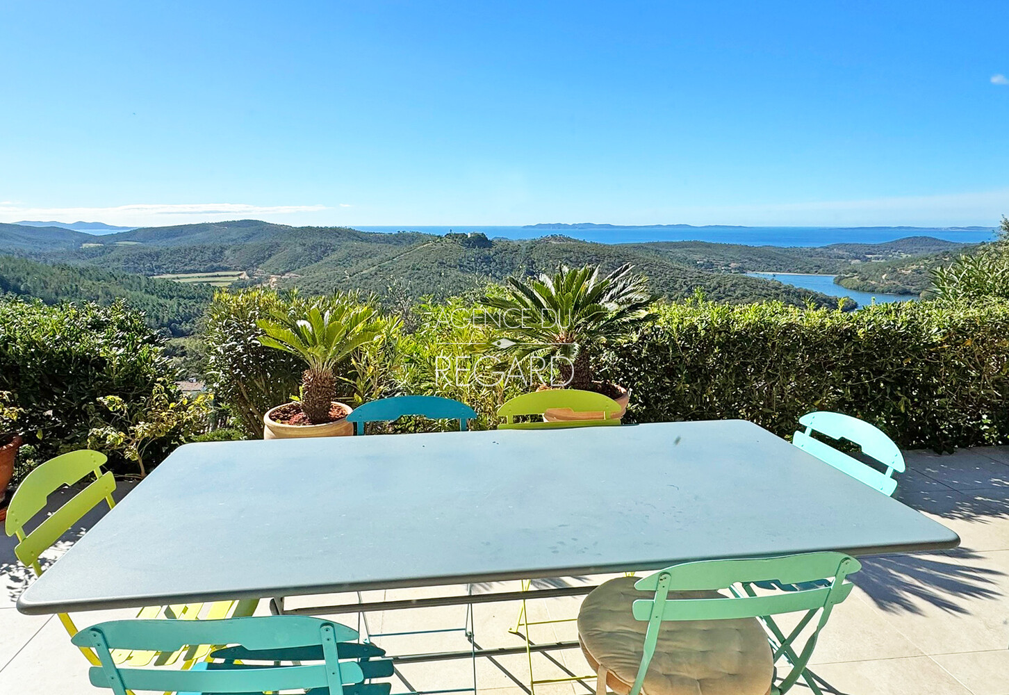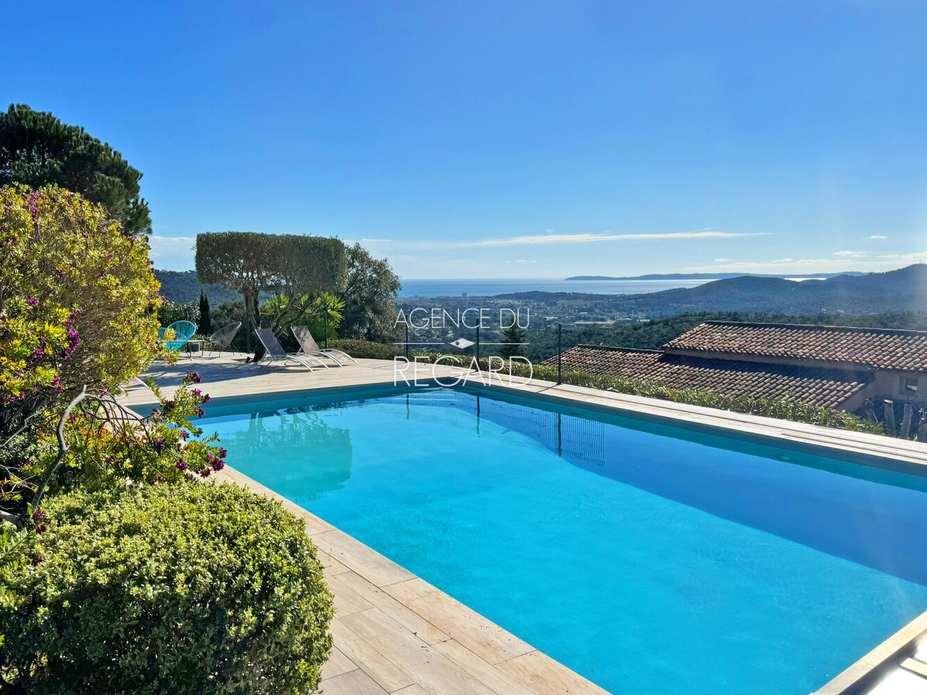 This 2,24sqm property is located between La Londe-les-Maures and Bormes-les-Mimosas, 15 minutes drive from their beaches and harbors. Situated atop a hill, the land is fully fenced and landscaped with wide terraces. It offers exceptional panoramic views of the sea, Golden islands, as well as Mount Coudon and Mount Faron. The traditional villa, of 260sqm, features a spacious 70sqm reception room extending onto a covered terrace with magnificent sea views. There is also a separate apartment, a pool house, an 11x6m swimming pool, a hammam, a pétanque court, two cellars, and a carport.