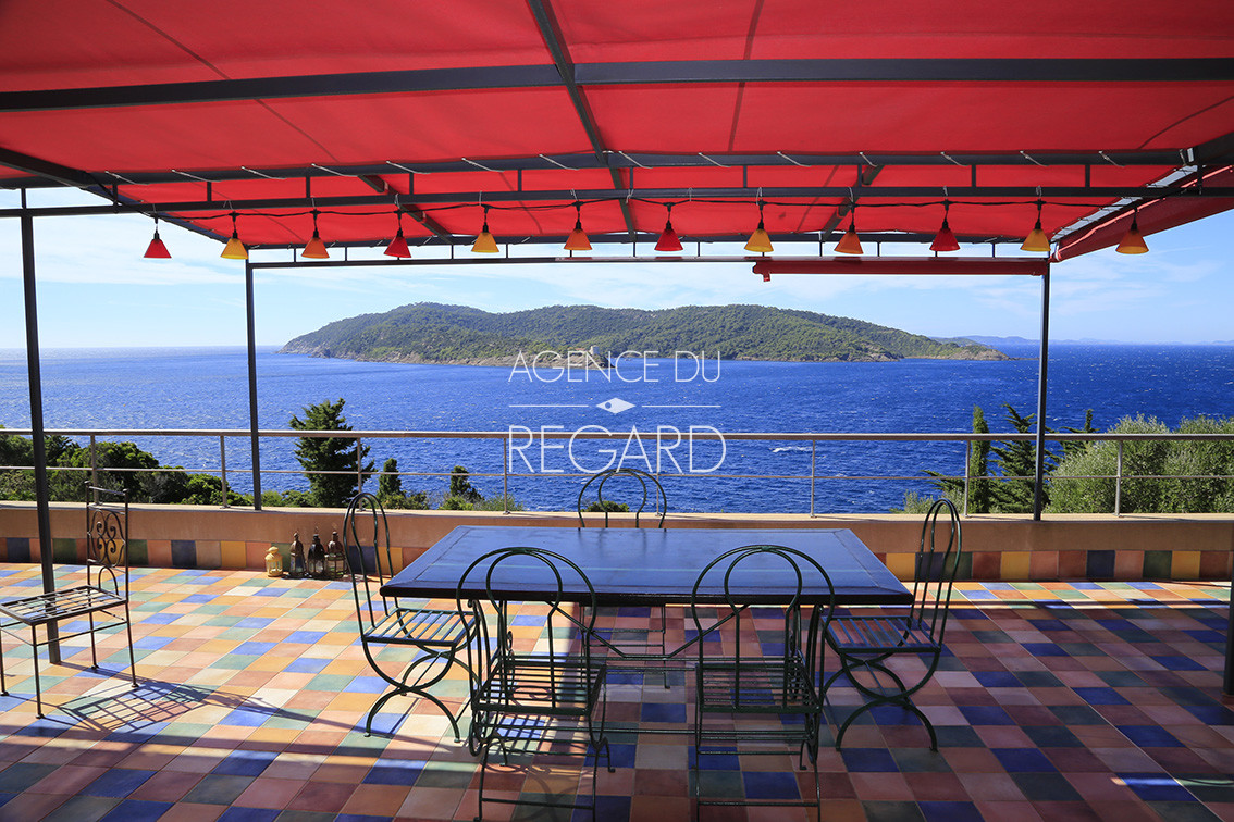 This property of about 1 610sqm, is just few steps from a cove with turquoise waters, in an area of 80 hectares with a small harbor, offers a majestic view on the island of Port Cros in front of Port Man, from where one can watches his anchored boat. The contemporary house of about 124sqm offers 4 bedrooms with their private bathroom. Magical sunsets to discover from the terrace or poolside.